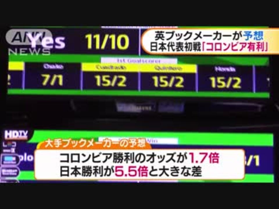 W杯日本初戦 英ブックメーカー コロンビア有利 ニコニコ動画